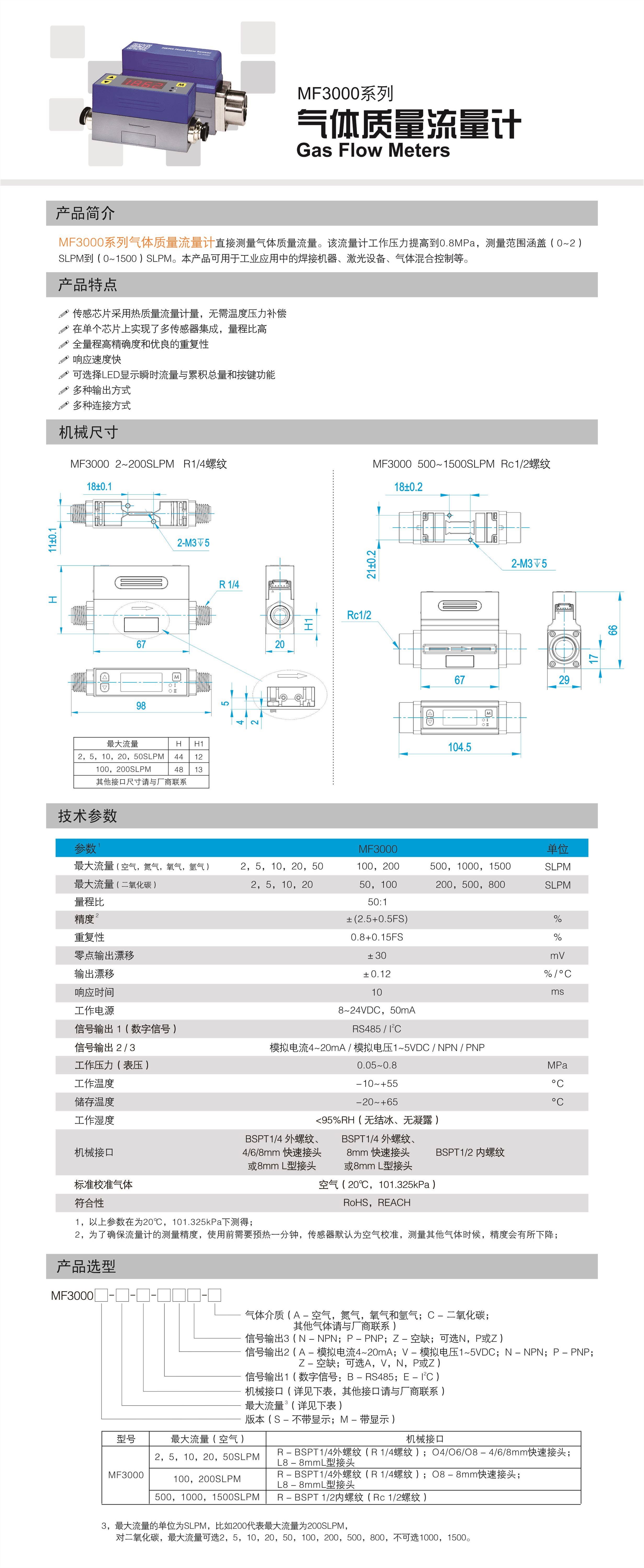 mf3000系列气体质量流量计直接测量气体质量流量。该流量计工作压力提高到0.8mpa,测量范围涵盖(0~2)slpm到(0~1500)slpm。本产品可用于工业应用中的焊接机器、激光设备、气体混合控制等。